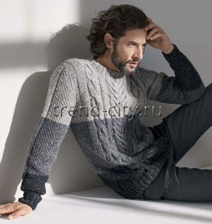 Далее вязать спицами №5 чередование цветов, при этом в 1-м ряду, равномерно распределяя, прибавить 10 (12) 10 п., петли распределить следующим образом: кромочная, 14 (17) 20 п. двойного жемчужного узора, 2 п. изнаночной глади, 5 п. лицевой глади, 18 п. по схеме 1, 2 п. лицевой глади, 30 п. по схеме 3, 2 п. лицевой глади, 18 п. по схеме 2, 5 п. лицевой глади, 2 п. изнаночной глади, 14 (17) 20 п. двойного жемчужного узора, кромочная = 114 (120) 126 п.