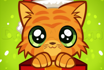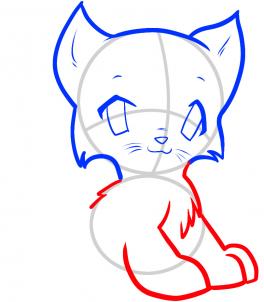 Глазки рисуются так же как и первого котенка. Только они большего размера. Мордочку рисуйте близко к глазам.